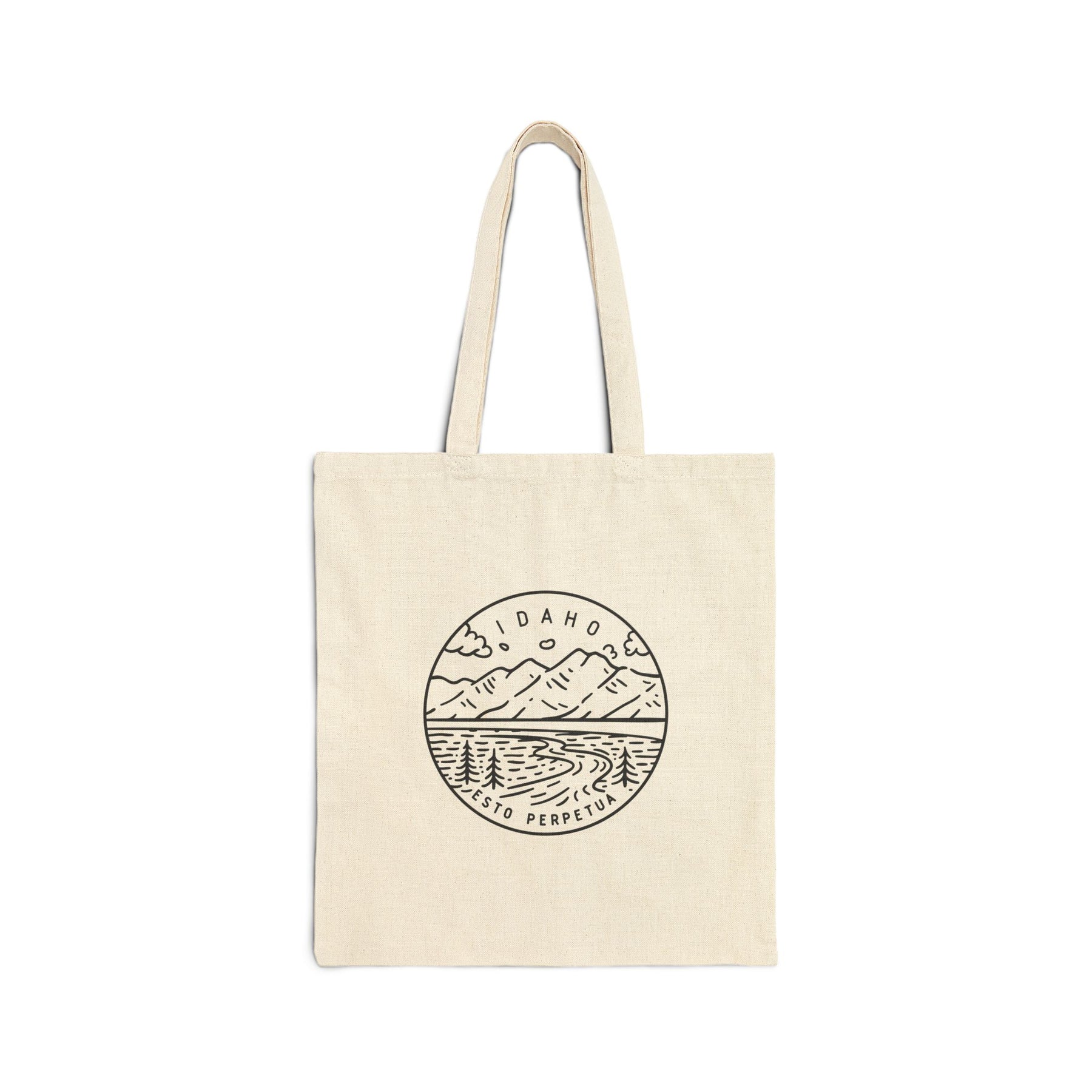 This Idaho state motto tote bag is perfect for everyday use. The eco friendly bag features 20" handles (made from the same canvas), making it easy to carry even with a week's worth of shopping. Reduce your plastic bag usage and help save the planet with a new tote!