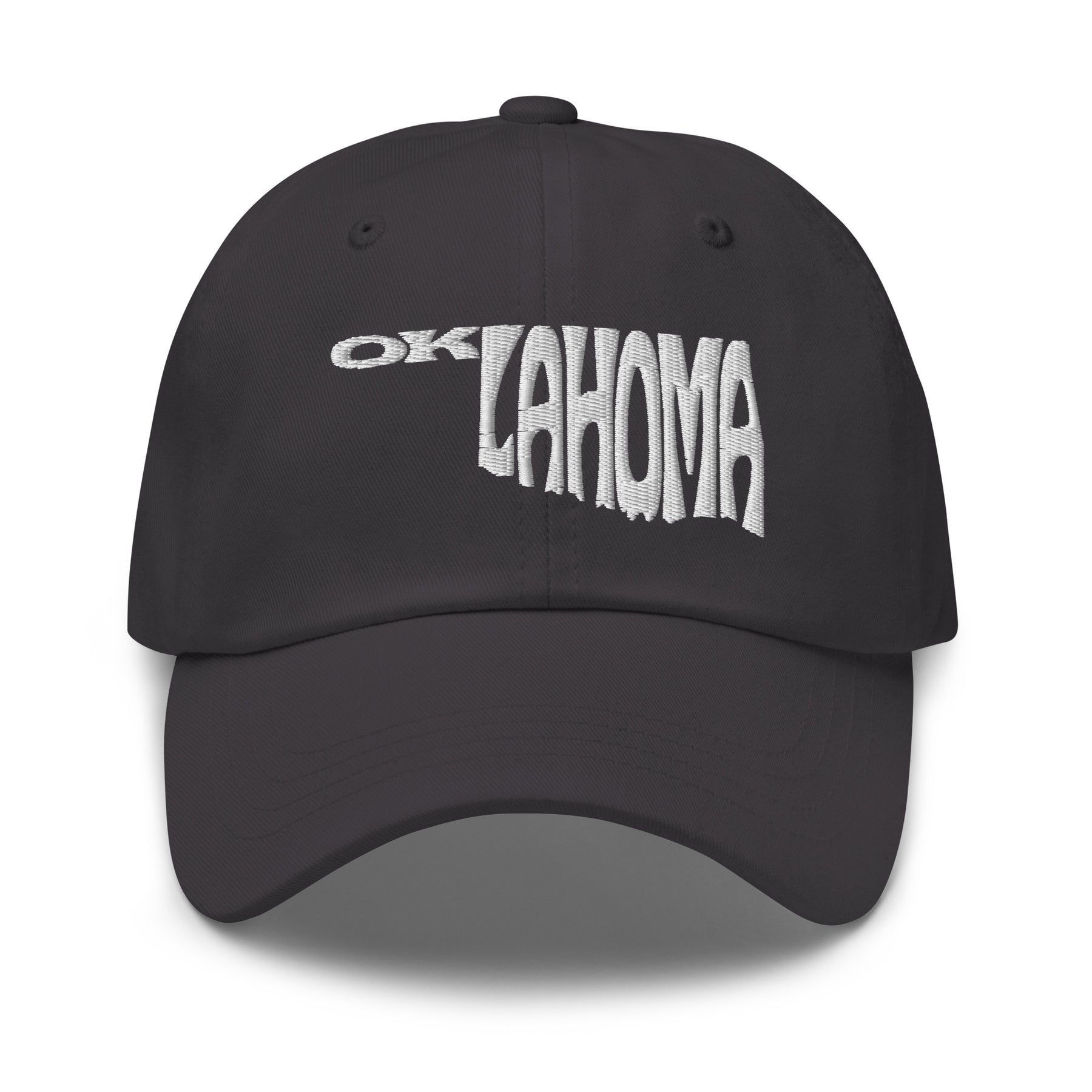 Our Oklahoma state shape embroidered unisex 6-panel twill cap is one of our most popular options and perfect for the great outdoors, sporting events, and everyday use. This solid design is 100% cotton twill and will become your go-to hat for years to come.
