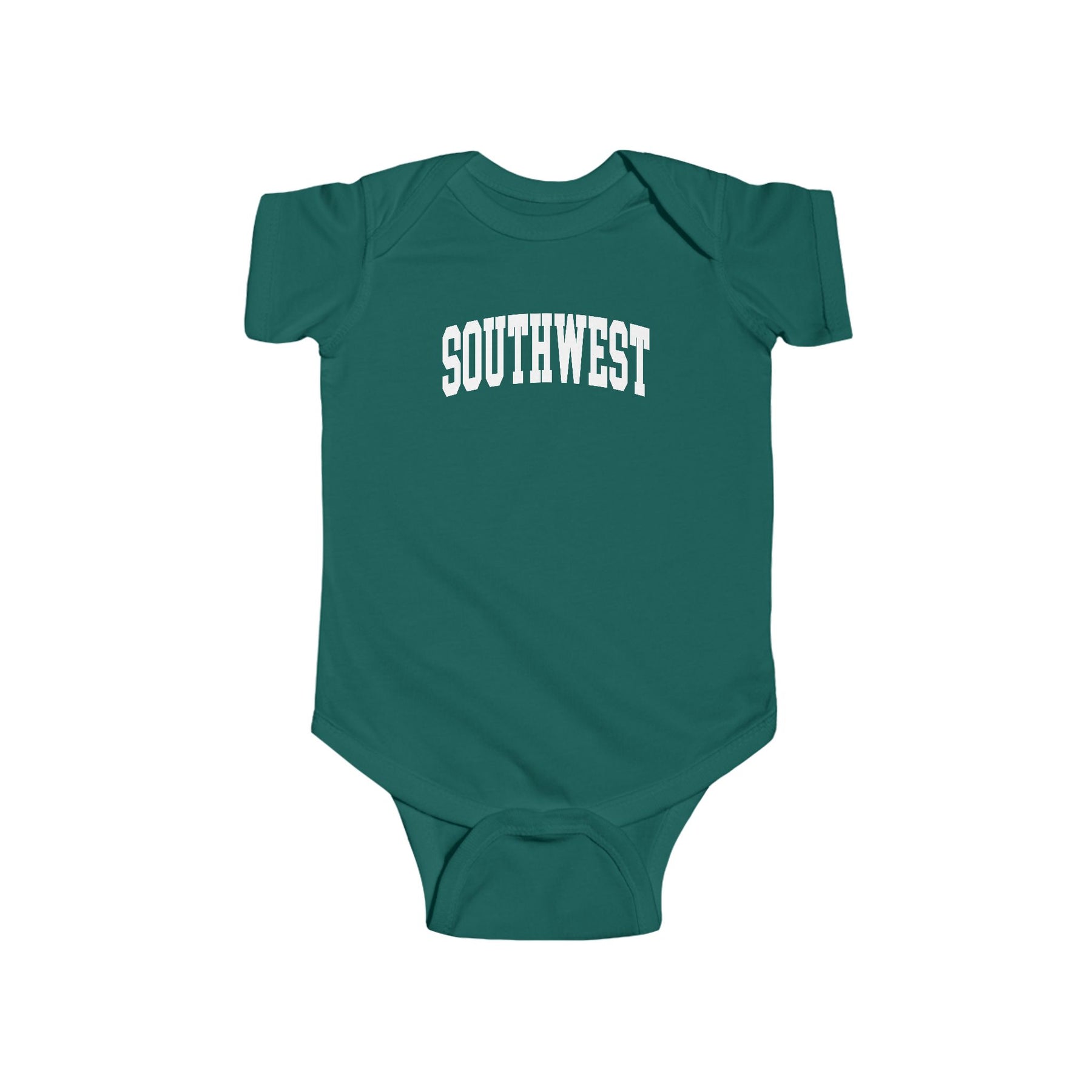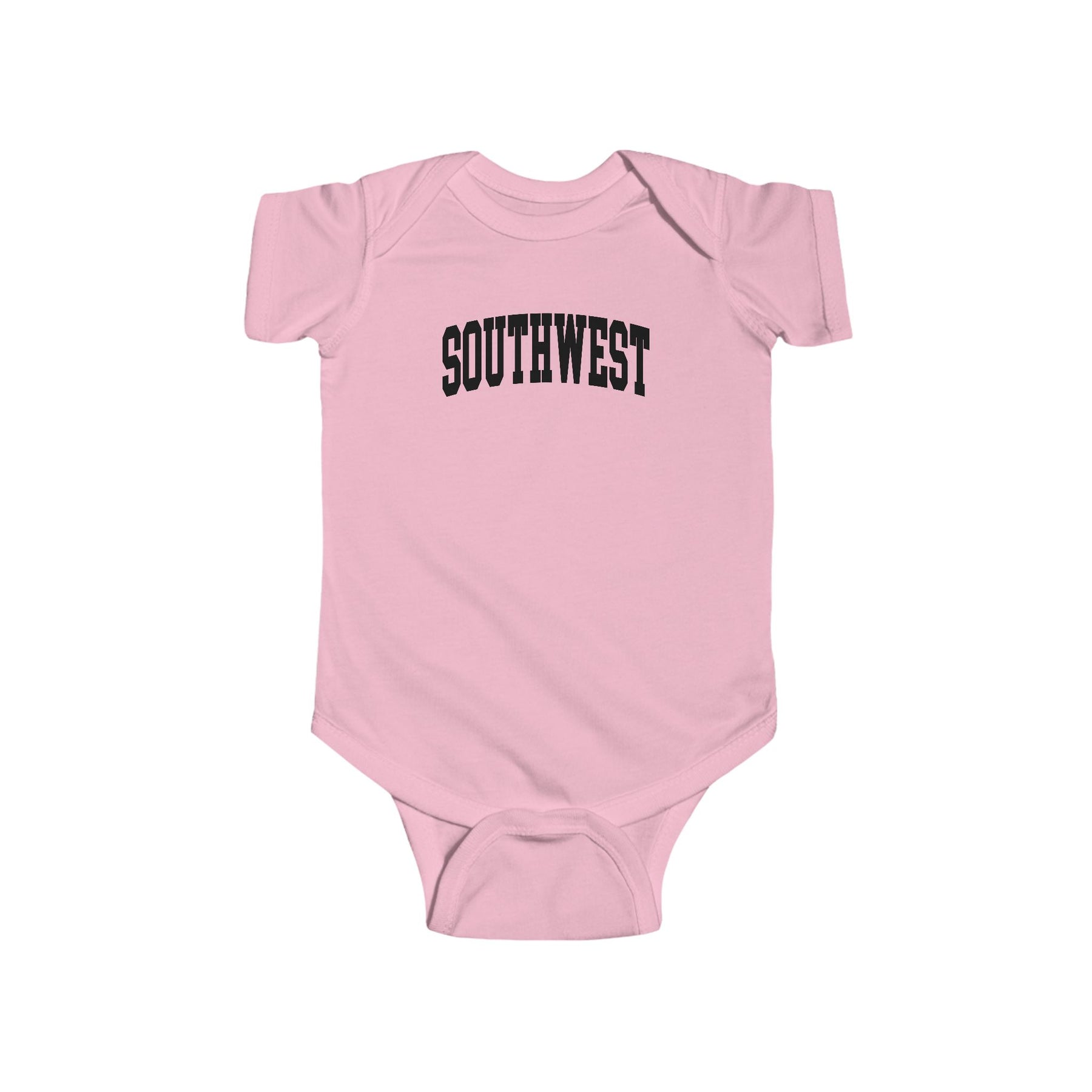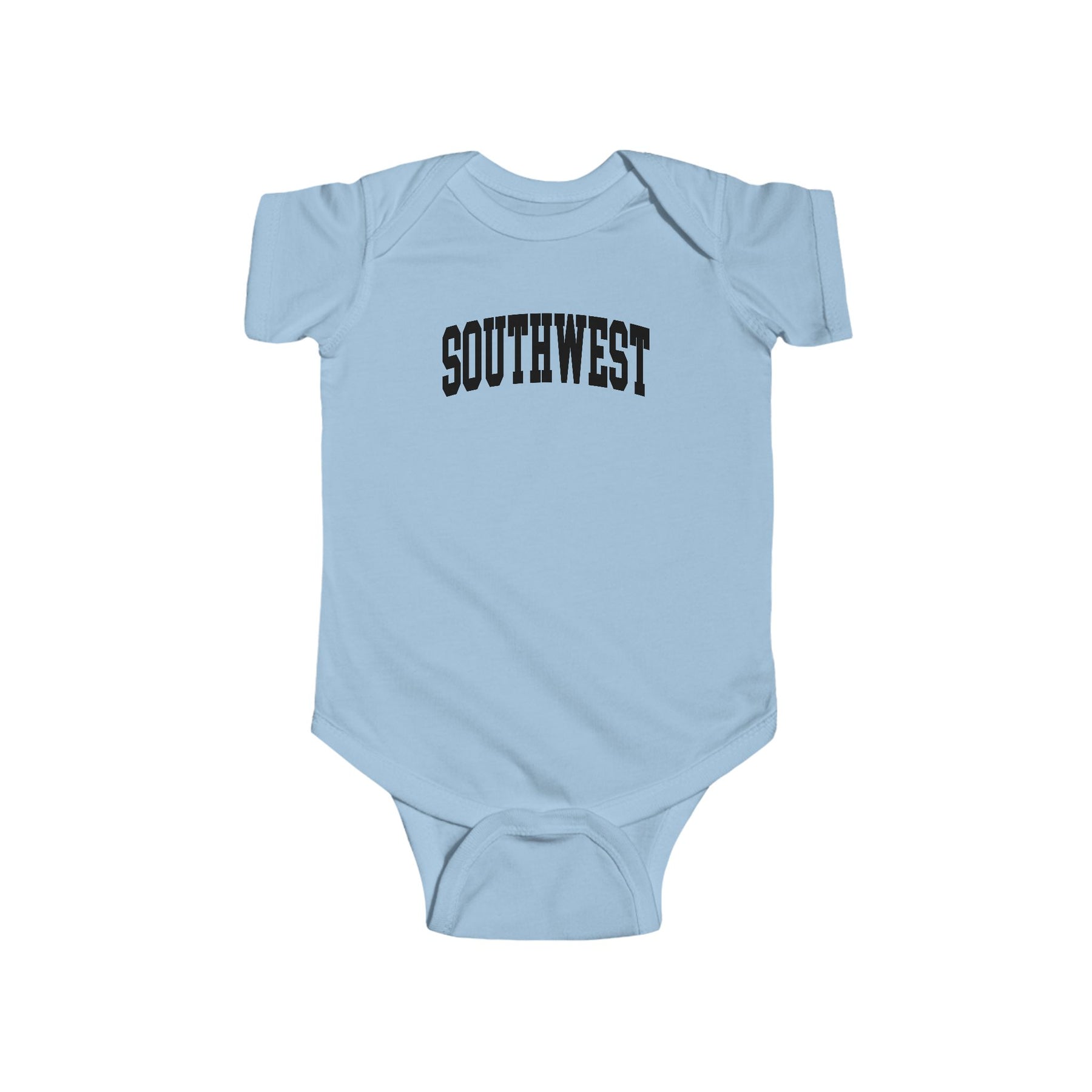 This super soft Southwest baby bodysuit is 100% combed cotton and designed to be comfortable next to delicate baby skin. The lap shoulders and reinforced three snap closure makes for ease of dressing. Tear away label.