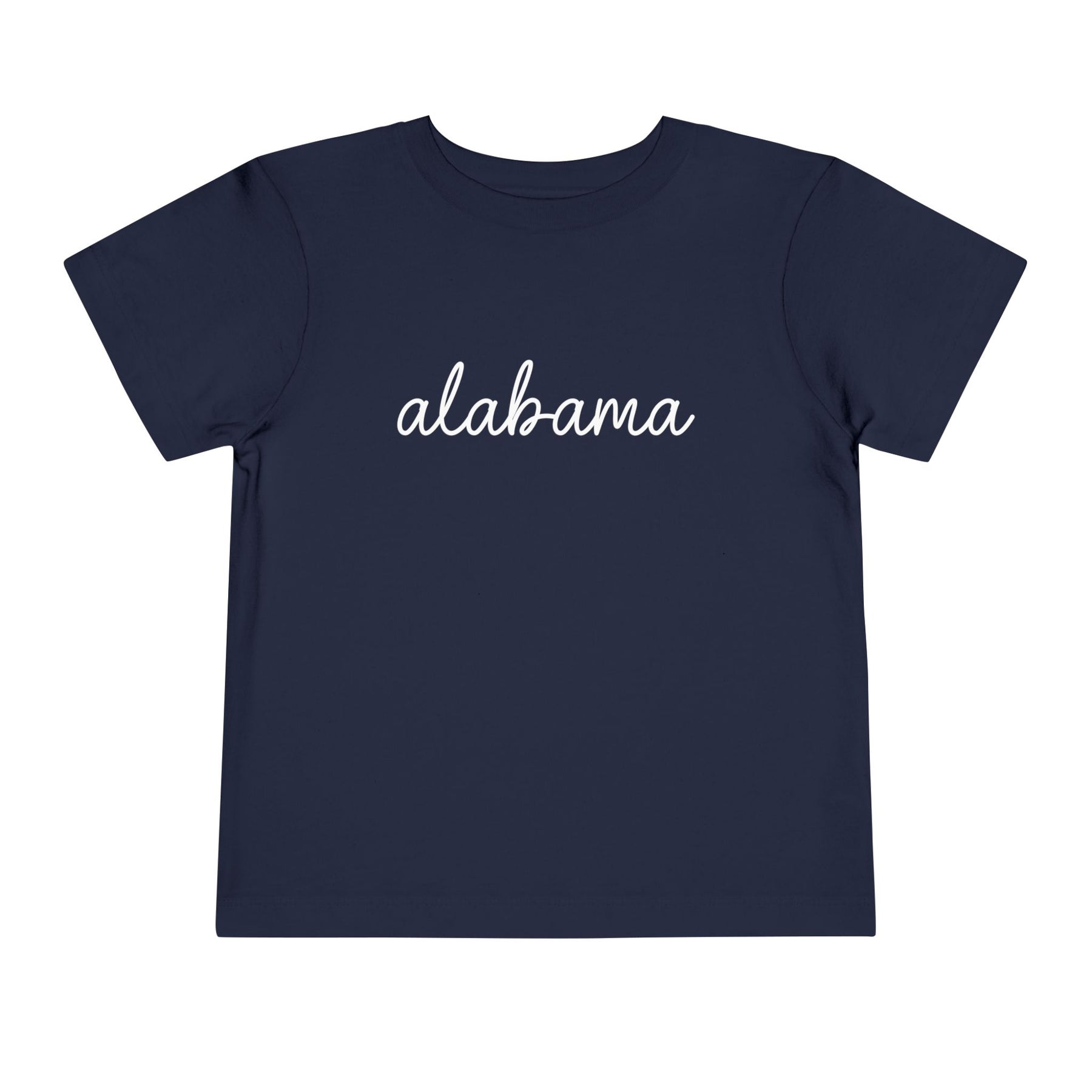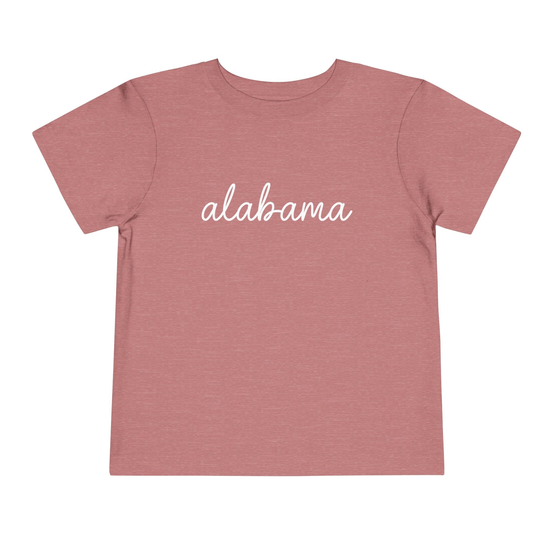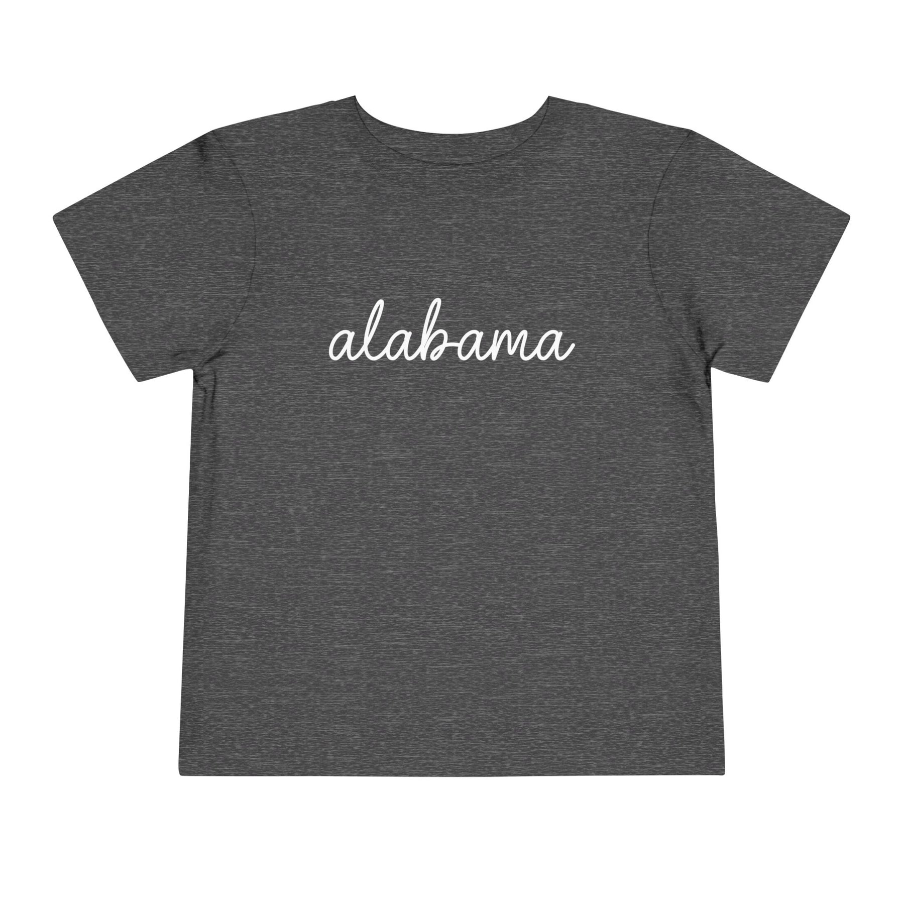 Our super soft Alabama script toddler tee is the perfect everyday t-shirt for your little one! The Bella Canvas short sleeve tee for toddlers is a 100% Airlume combed and ring-spun cotton jersey with a tear-away label for extra comfort.