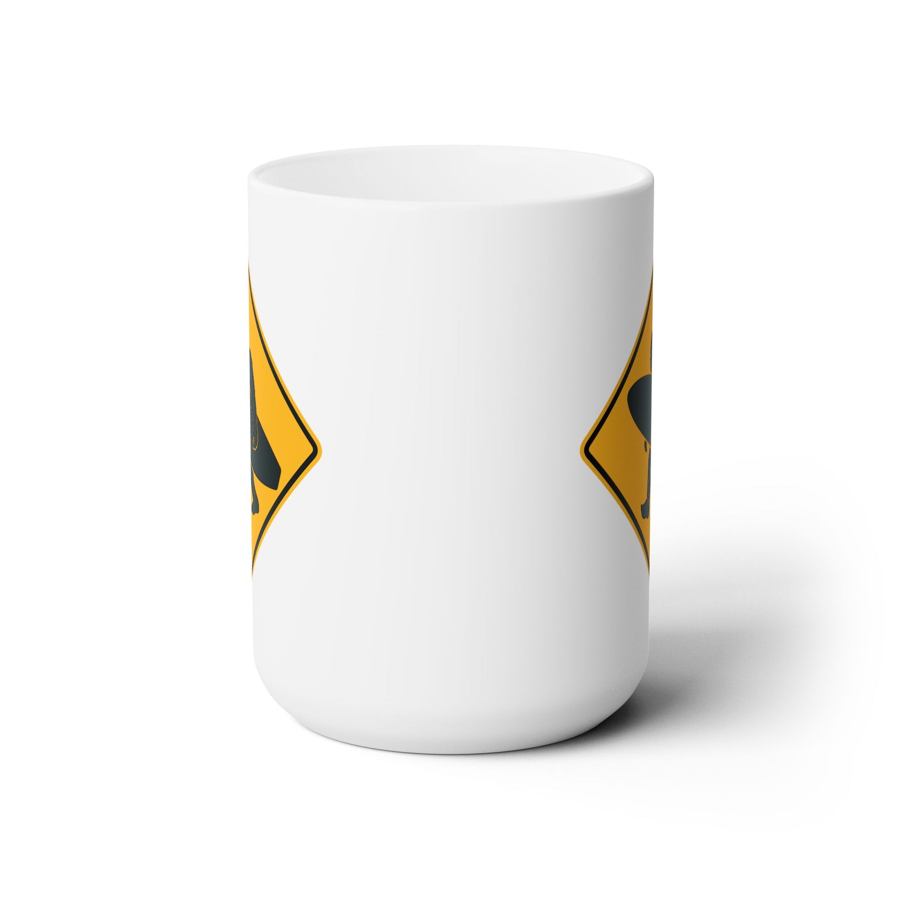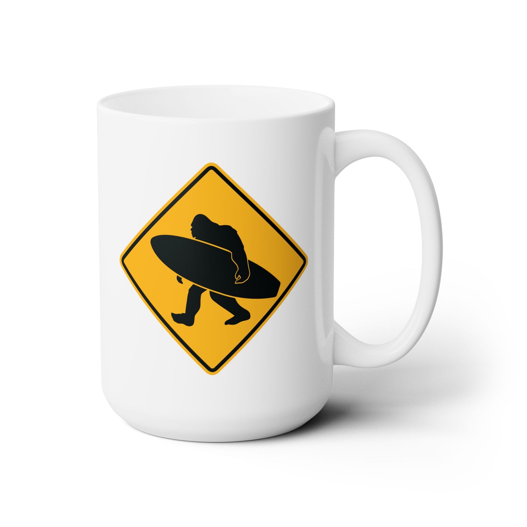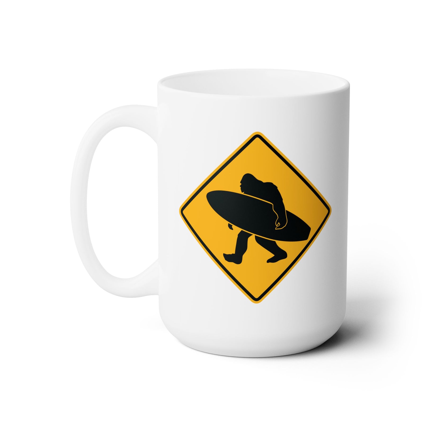 Enjoy your morning coffee with in the Sasquatch surfer crossing 15oz. ceramic mug. A premium hard coat provides crisp and vibrant color designed to last for years. Perfect for all hot & cold beverages.