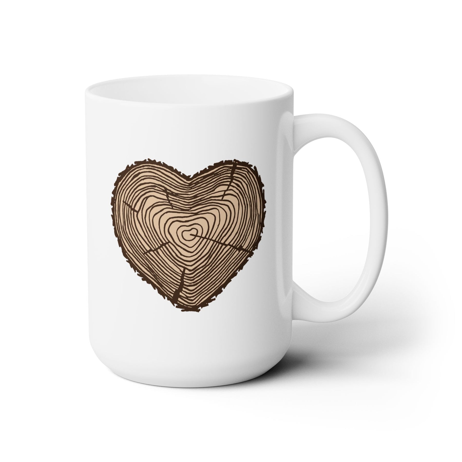 Enjoy your morning coffee with in the tree rings heart 15oz. ceramic mug. A premium hard coat provides crisp and vibrant color designed to last for years. Perfect for all hot & cold beverages.
