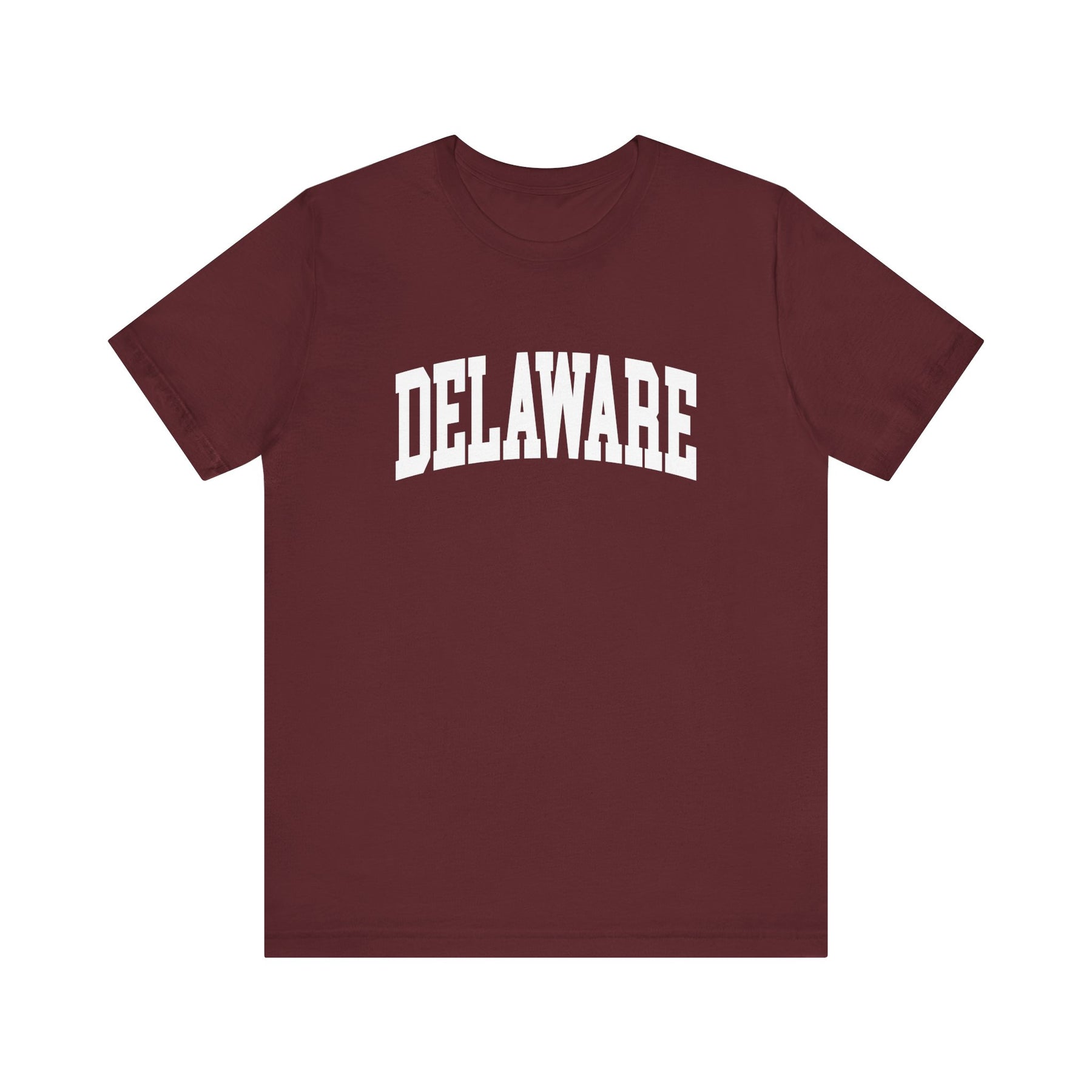 This Delaware varsity style t-shirt is everything you've dreamed of and more. It feels soft and lightweight, with the right amount of stretch. It's comfortable and flattering for both men and women. Traditional unisex sized fit, women may want to size down.