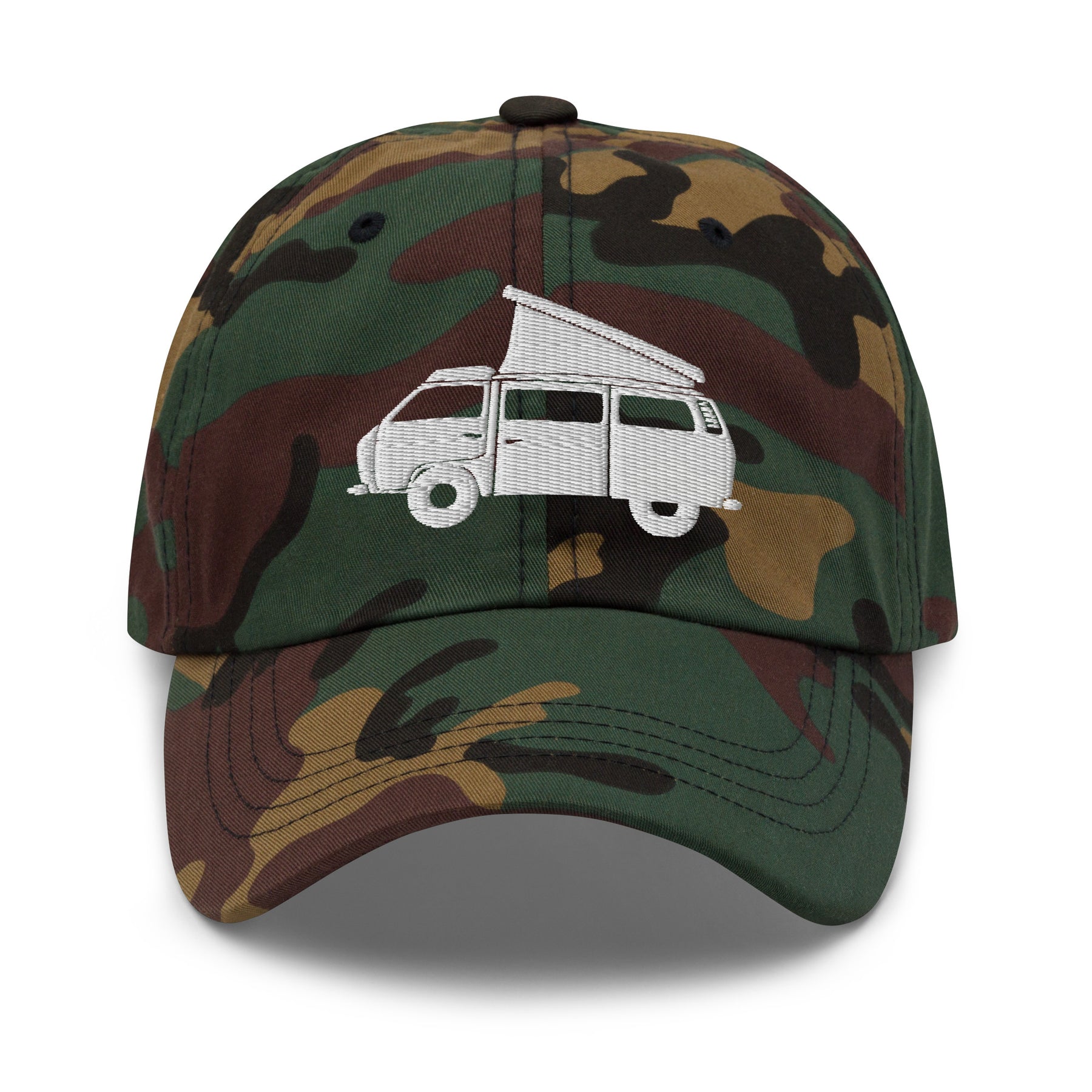 Our van life embroidered unisex 6-panel twill cap is one of our most popular options and perfect for the great outdoors, sporting events, and everyday use. This solid design is 100% cotton twill and will become your go-to hat for years to come.