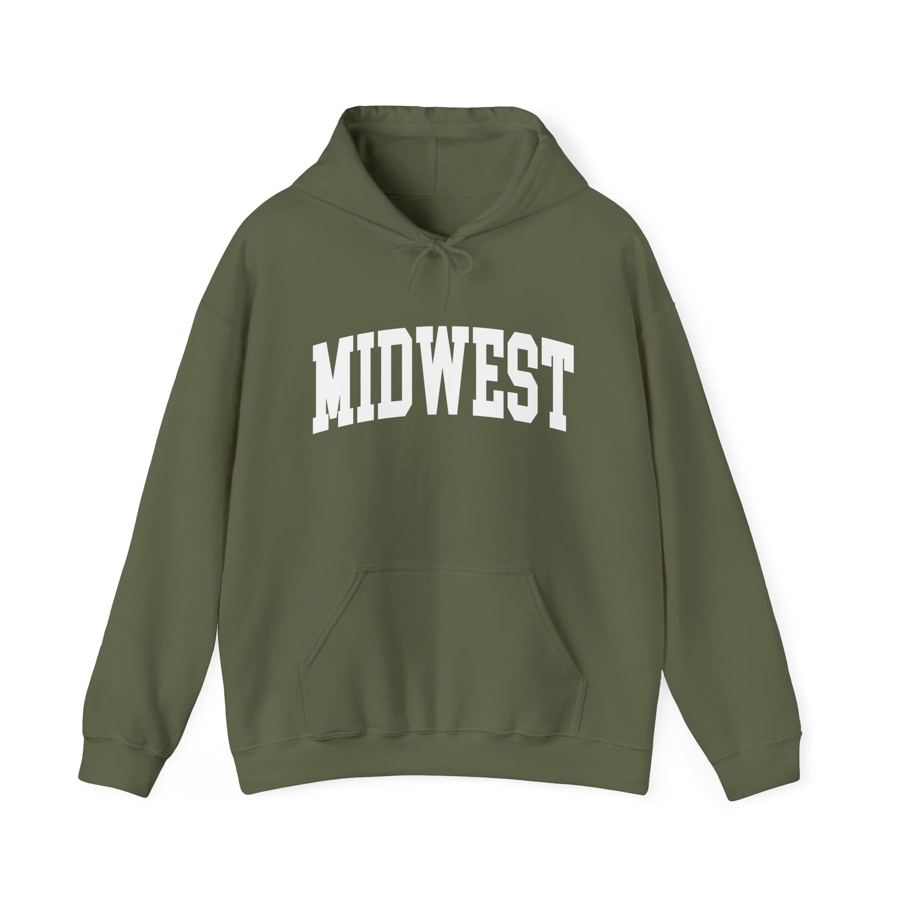 Crafted for comfort, this Midwest varsity style hooded sweatshirt is perfect for relaxing. Once put on, it will be impossible to take off.