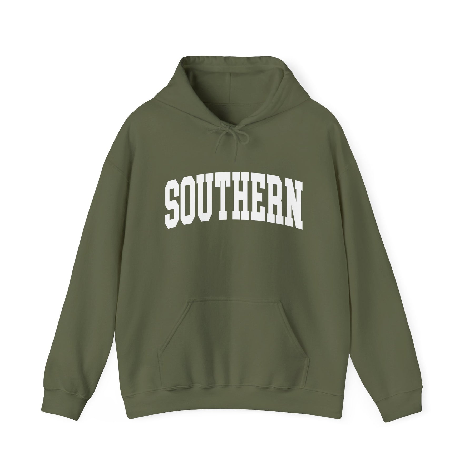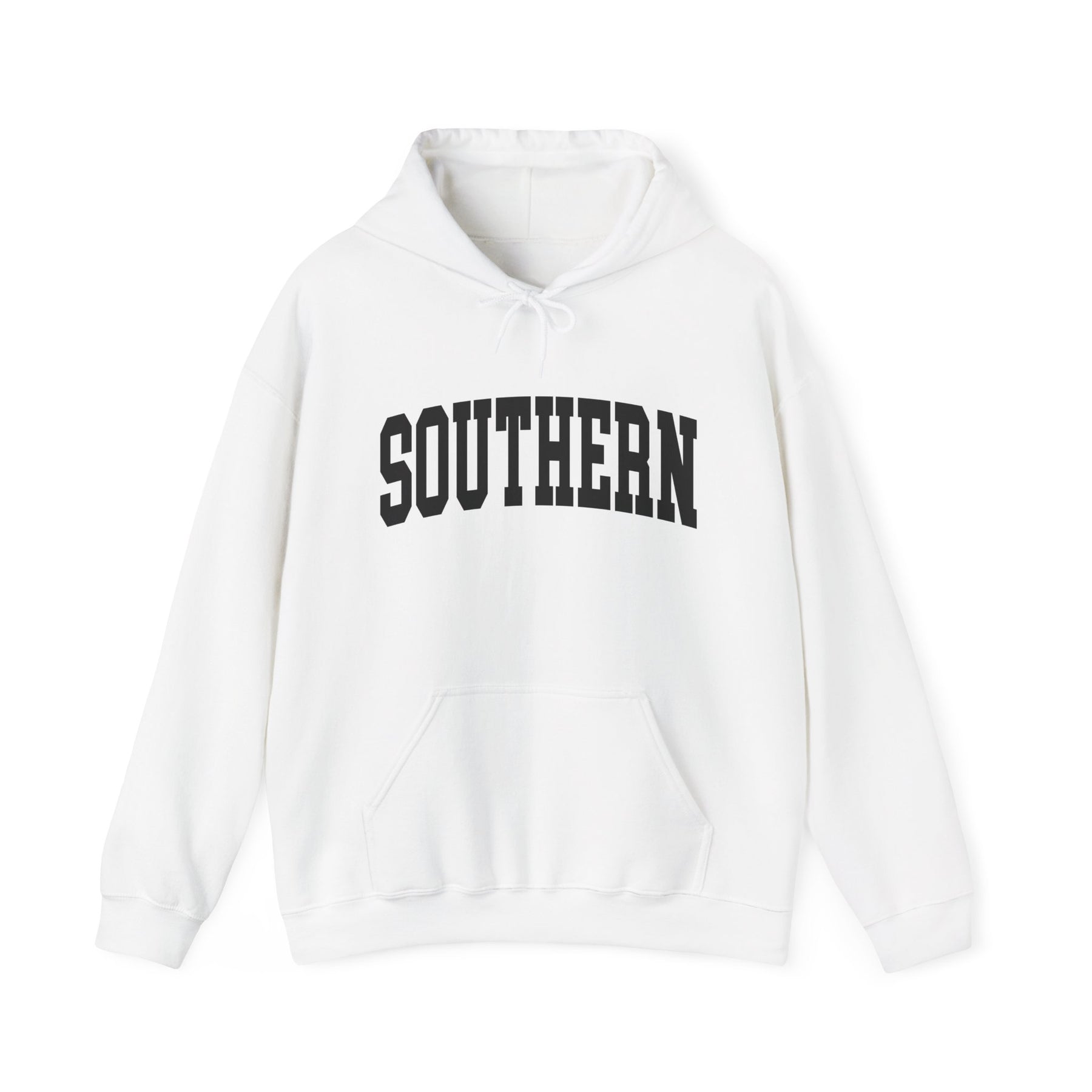Crafted for comfort, this Southern varsity style hooded sweatshirt is perfect for relaxing. Once put on, it will be impossible to take off.