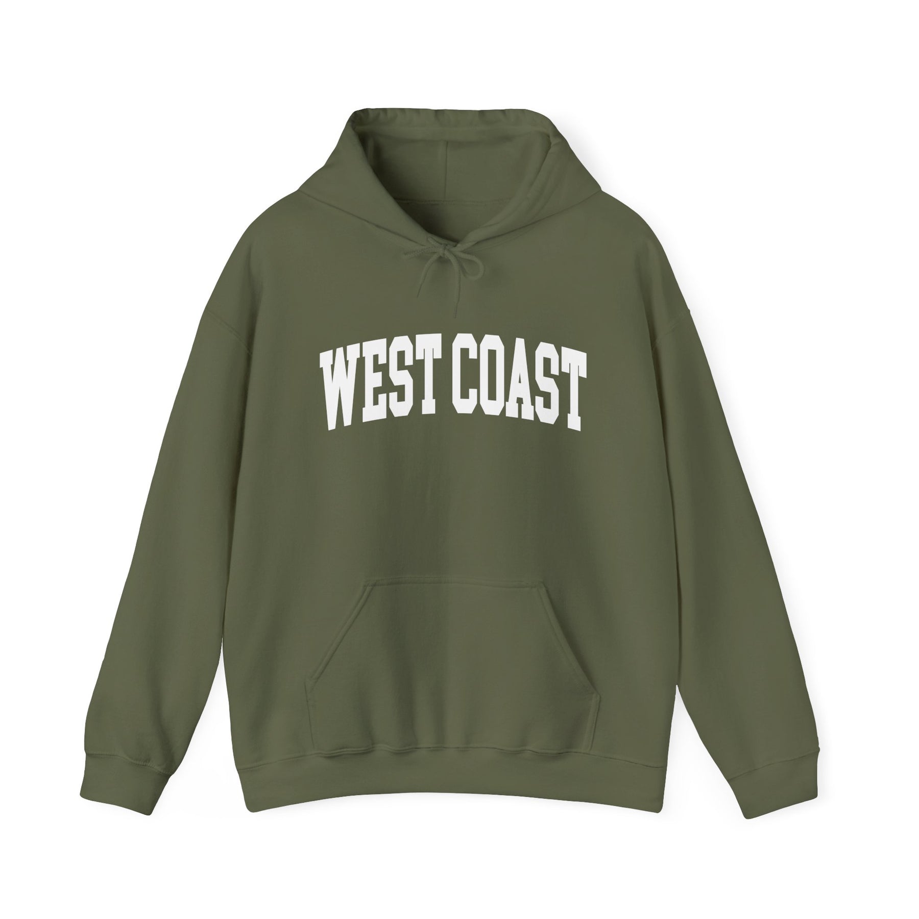 Crafted for comfort, this West Coast varsity style hooded sweatshirt is perfect for relaxing. Once put on, it will be impossible to take off.