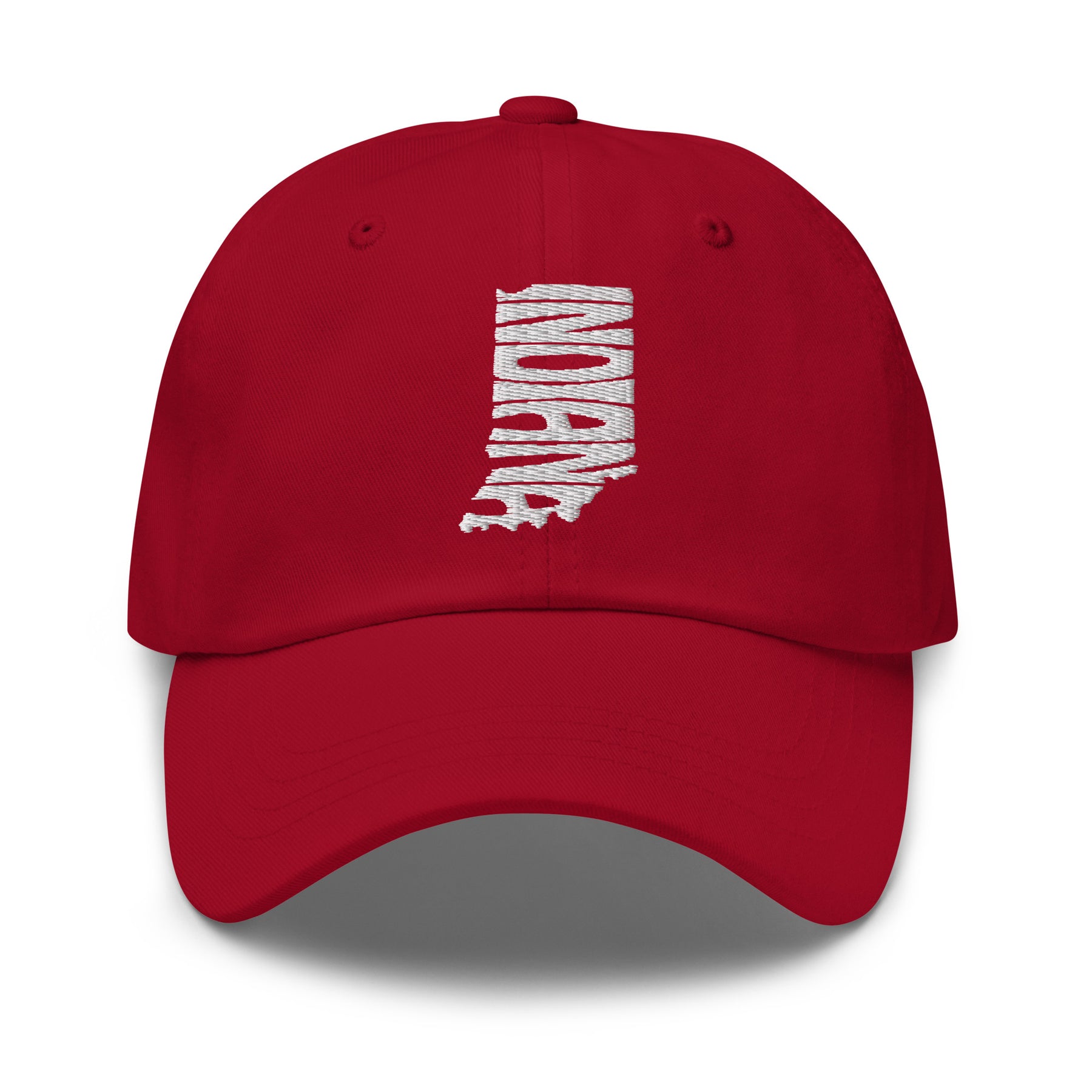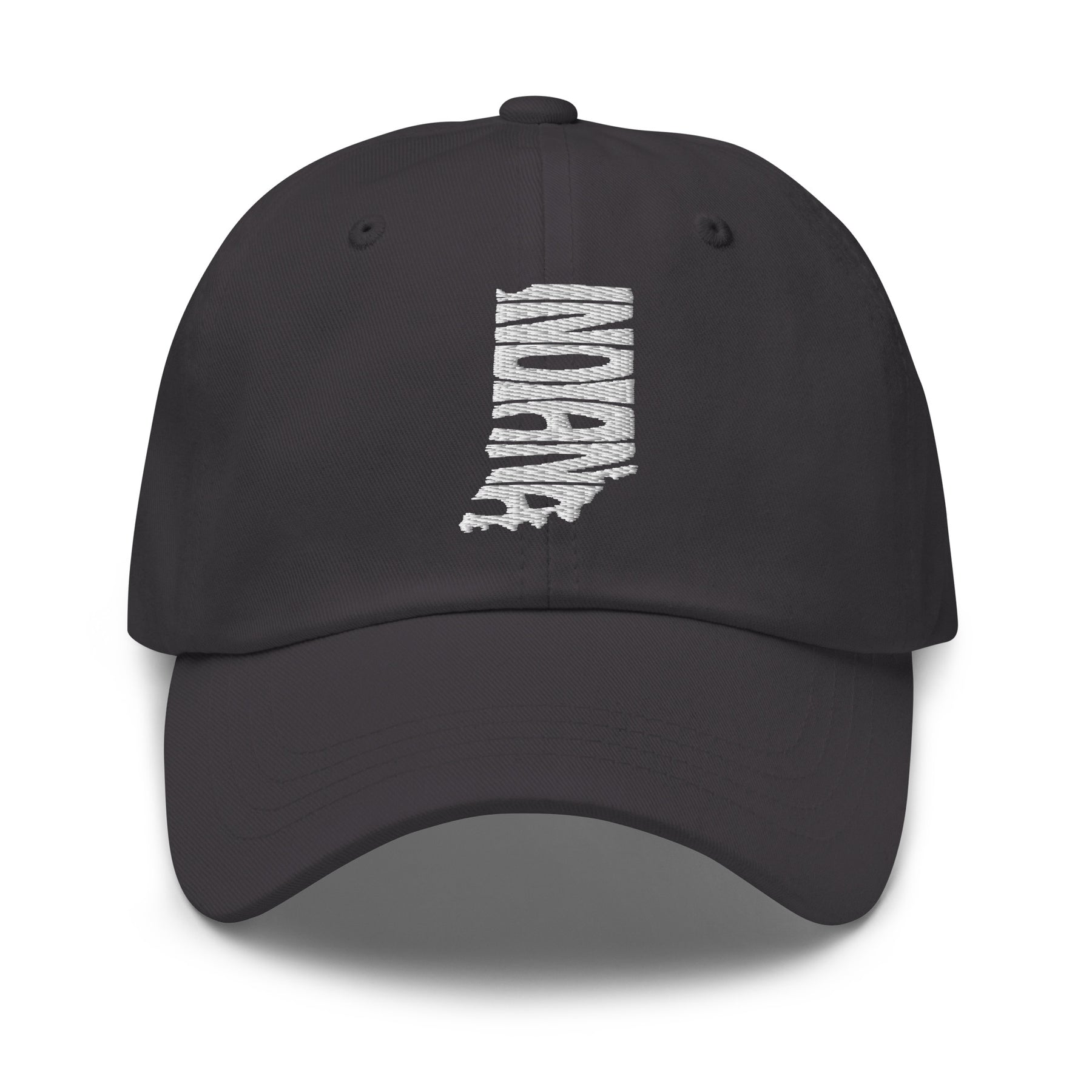 Our Indiana state shape embroidered unisex 6-panel twill cap is one of our most popular options and perfect for the great outdoors, sporting events, and everyday use. This solid design is 100% cotton twill and will become your go-to hat for years to come.
