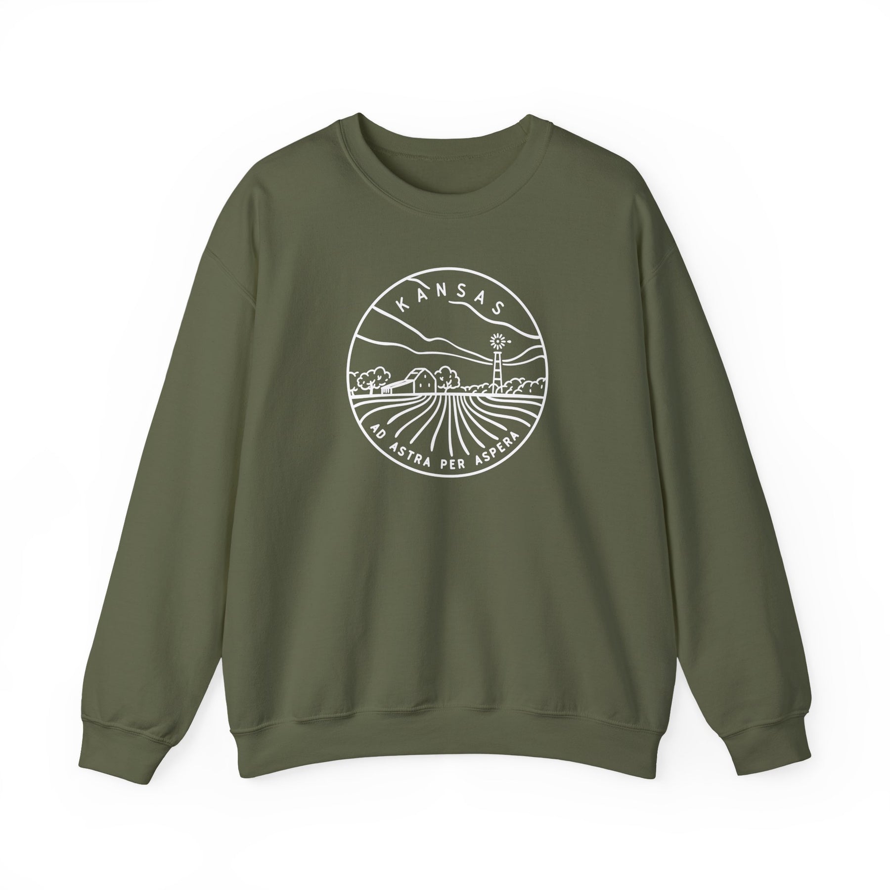 This Kansas state motto soft sweatshirt has a loose fit for a comfortable feel. With a durable print, it will look great for years to come.