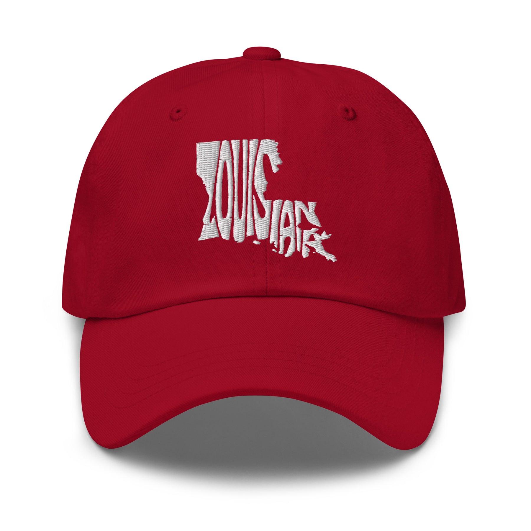 Our Louisiana state shape embroidered unisex 6-panel twill cap is one of our most popular options and perfect for the great outdoors, sporting events, and everyday use. This solid design is 100% cotton twill and will become your go-to hat for years to come.
