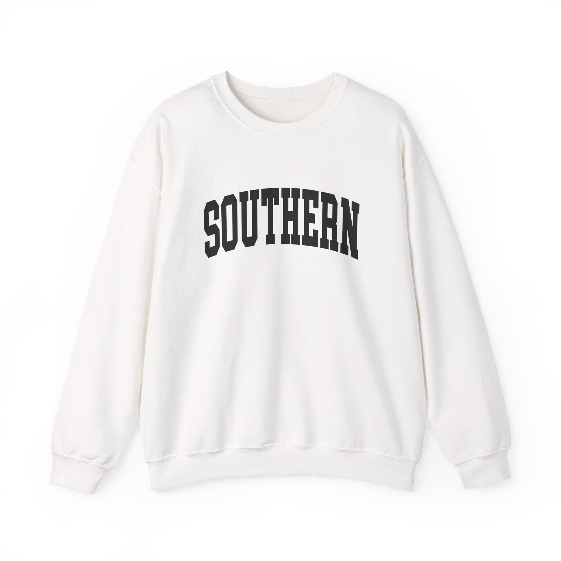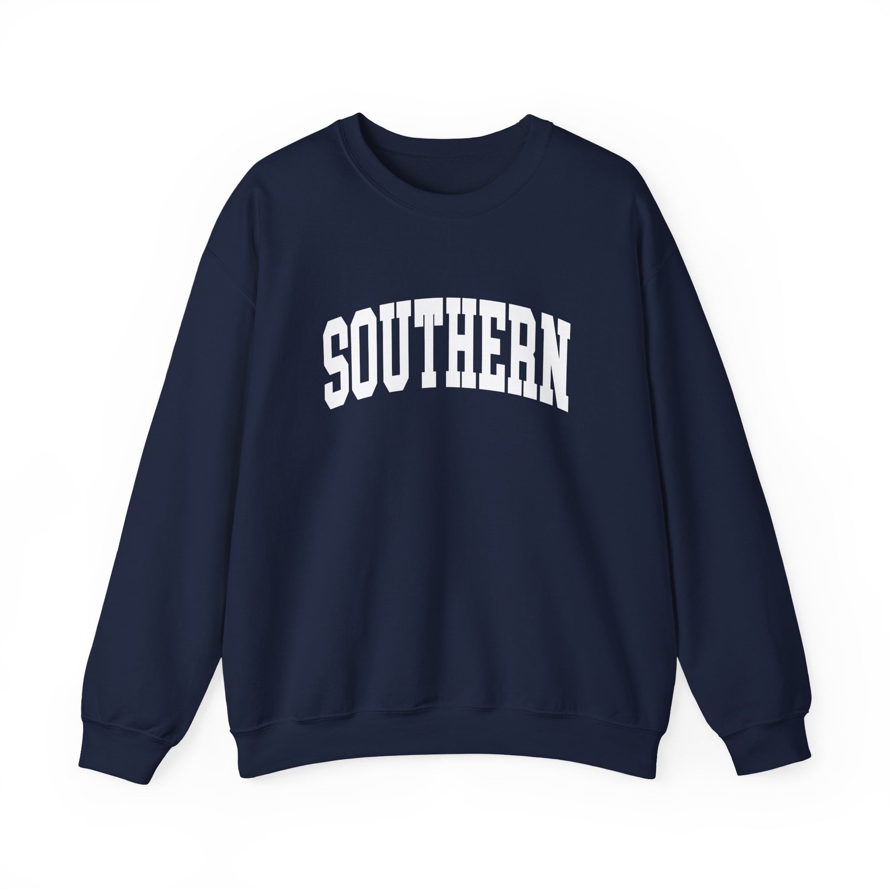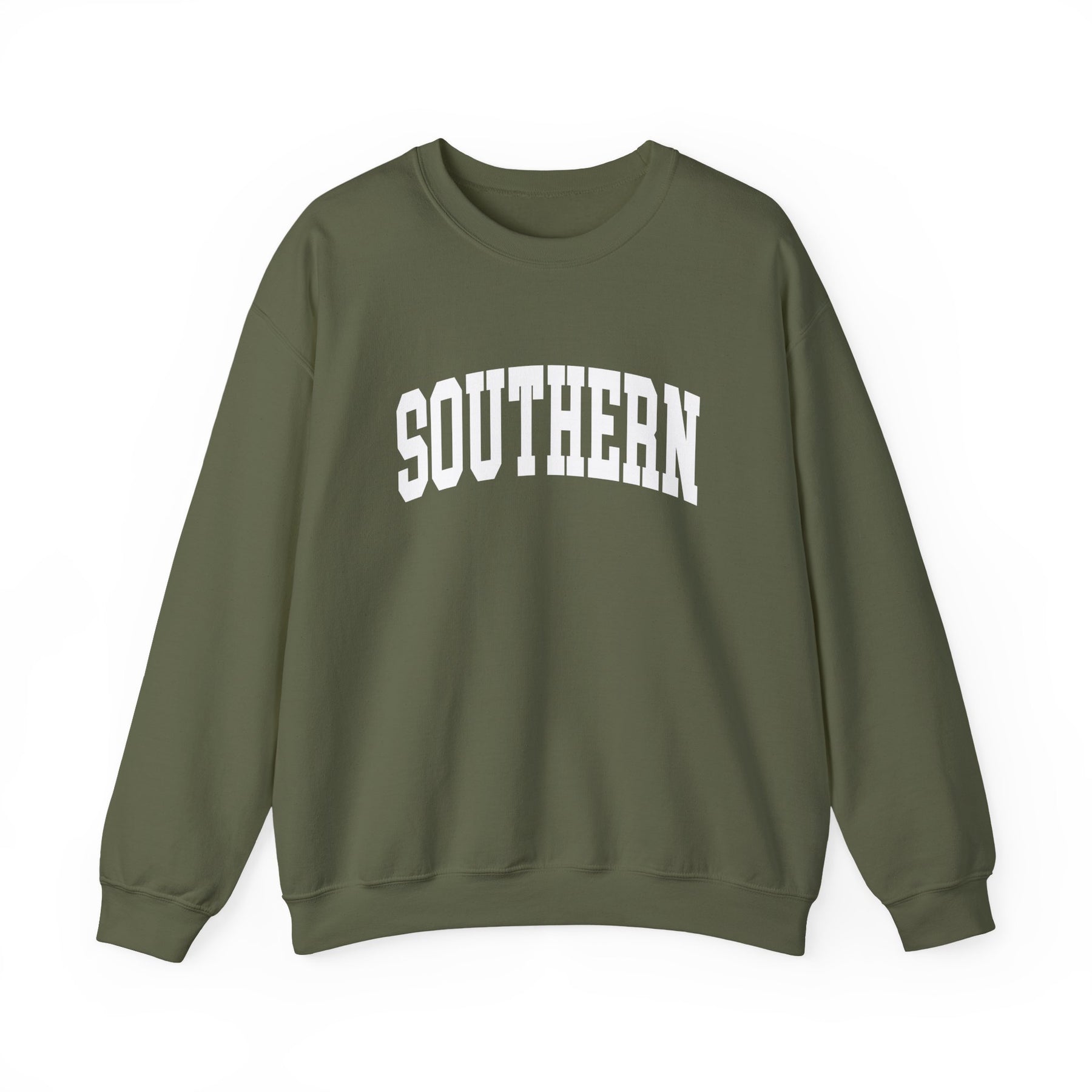 This Southern varsity style soft sweatshirt has a loose fit for a comfortable feel. With a durable print, it will look great for years to come.