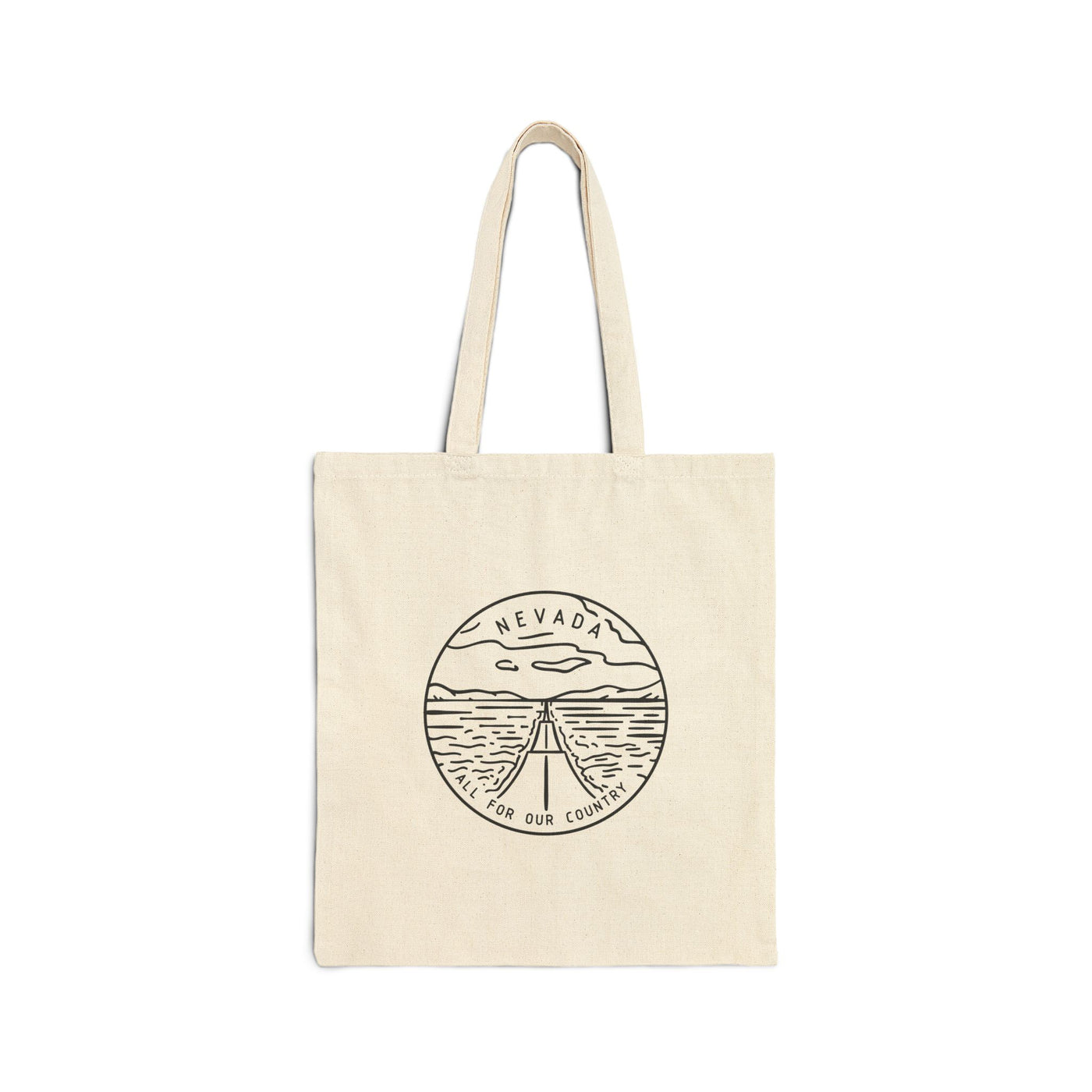 This Nevada state motto tote bag is perfect for everyday use. The eco friendly bag features 20" handles (made from the same canvas), making it easy to carry even with a week's worth of shopping. Reduce your plastic bag usage and help save the planet with a new tote!