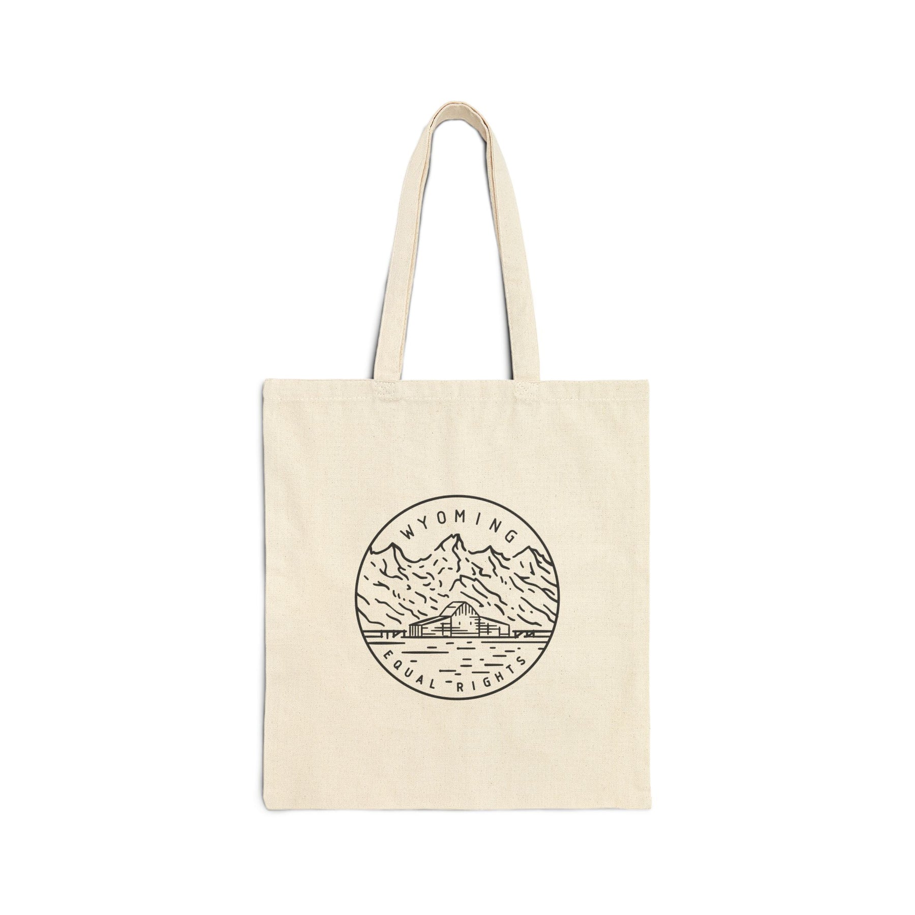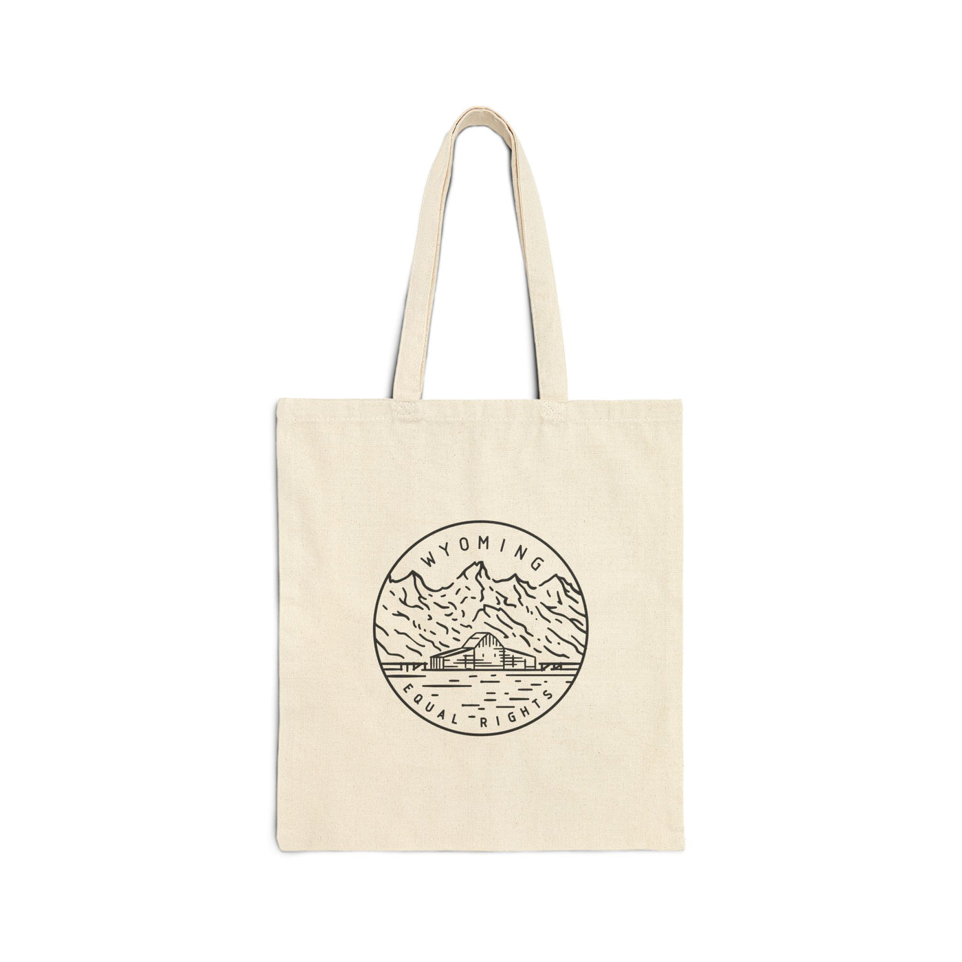 This Wyoming state motto tote bag is perfect for everyday use. The eco friendly bag features 20" handles (made from the same canvas), making it easy to carry even with a week's worth of shopping. Reduce your plastic bag usage and help save the planet with a new tote!
